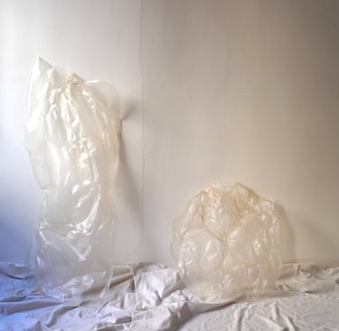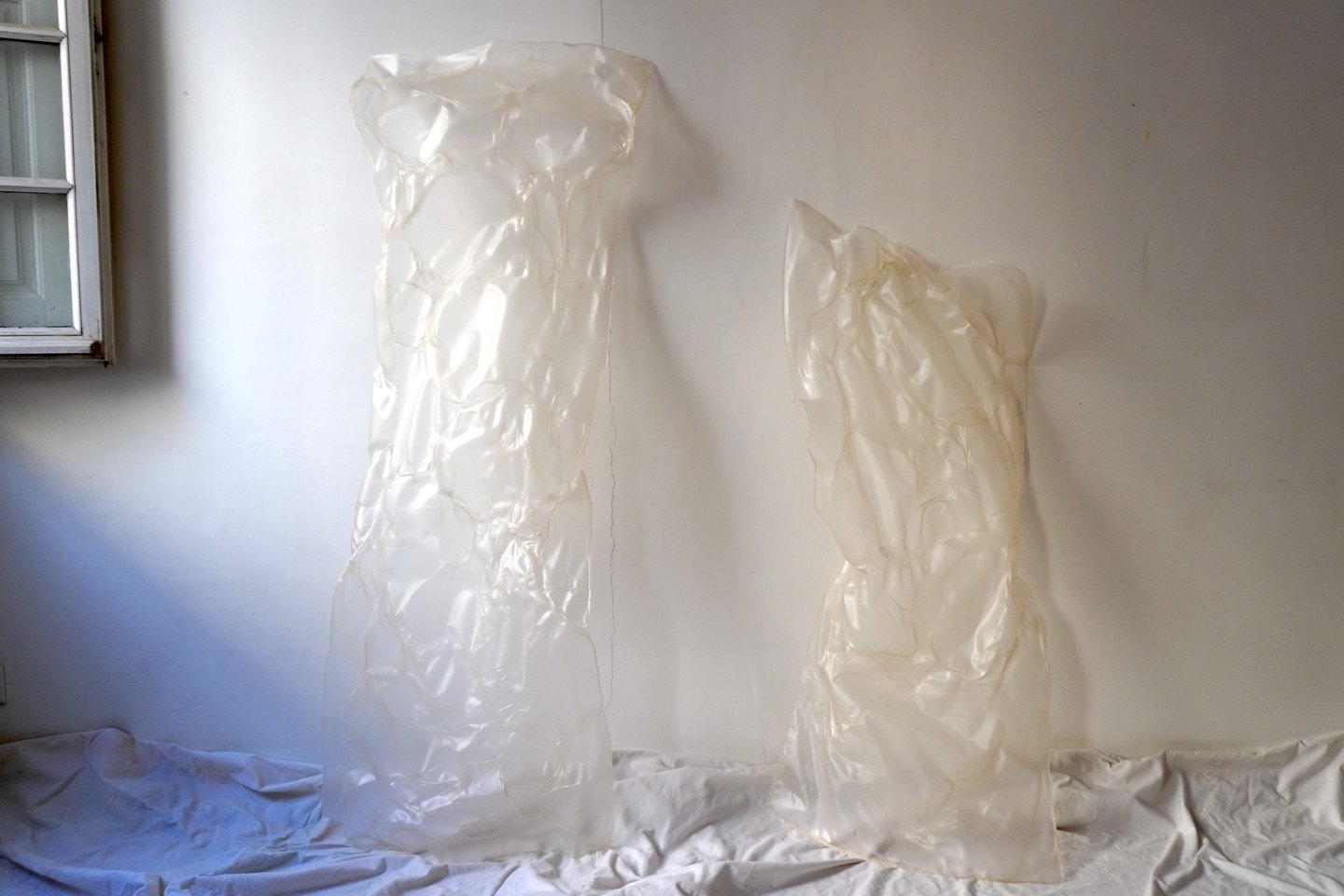 Carrying the physical imprints of the objects on which they dried, these sculptures suggest a tactile approach in which I attempt to capture climatic moment(s).