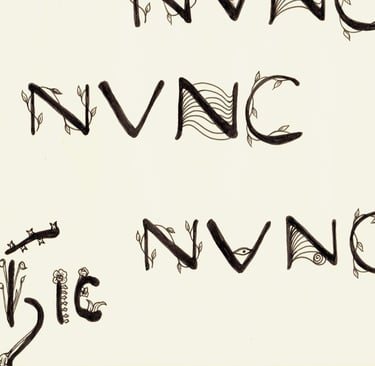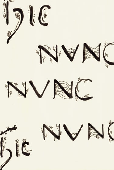 Inspired from Klimt and Mucha's personal handwriting, hit & nunc means "here and now".
